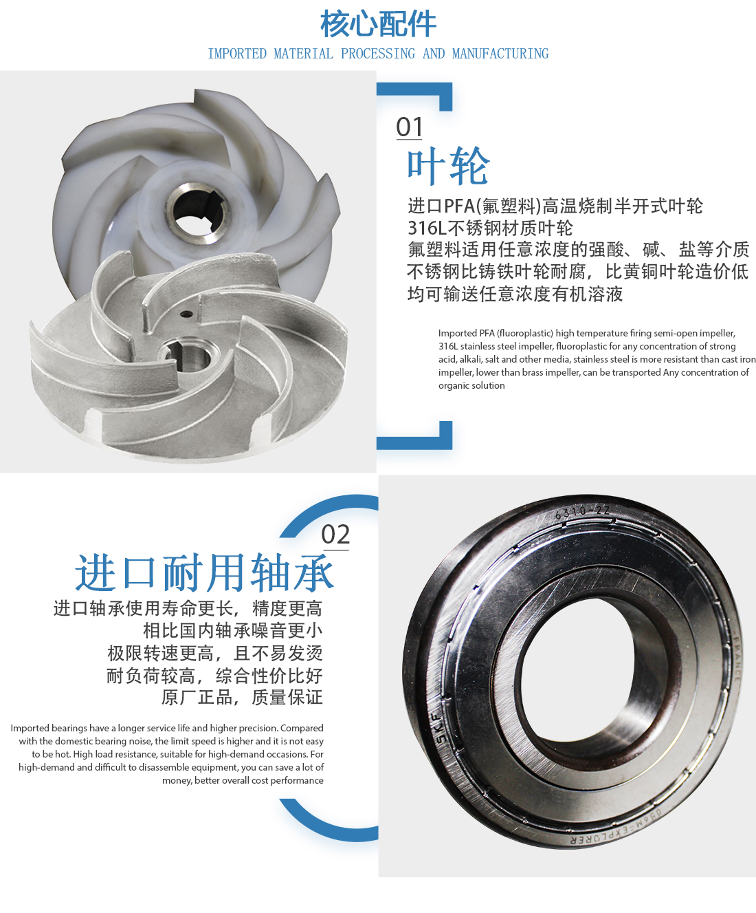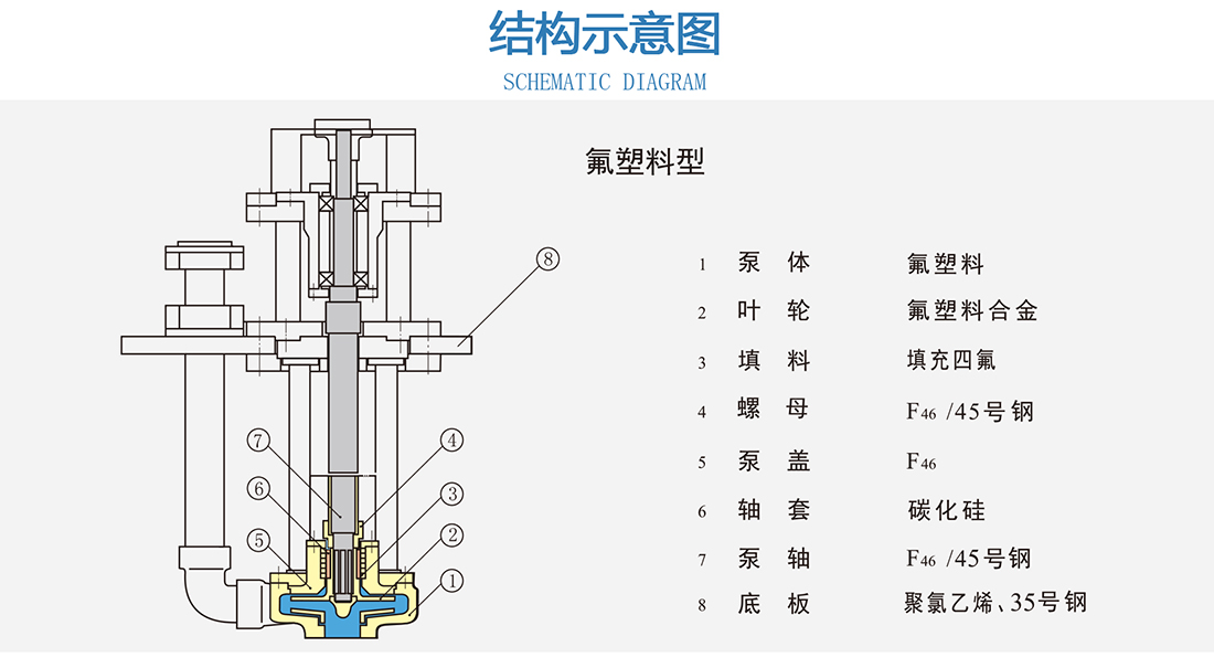 設計特點:葉輪和傳動軸等受力部分為金屬骨骼,外包塑料(緊襯和松襯工藝),扭矩強勁,耐腐蝕性優越,軸承和其他滑動部件均采用SiC陶瓷,可用來輸送絕大多數化學液體。泵體全部浸沒在液體中,沒有倒灌和泄露的煩惱。用途:化工,石油行業,食品,冶金,紙廠,機械,精細化工,染料,飲料,儀表,輕工,紡織,環保,水處理,醫藥,污水工程,水處理,醫院等各行各業等。流量范圍:3.6m3/h-100m3/h,揚程范圍:10m-50m,功率范圍:1.5kw-37kw。運行溫度:-20℃—120℃??筛鶕嶋H工況要求變更配置。